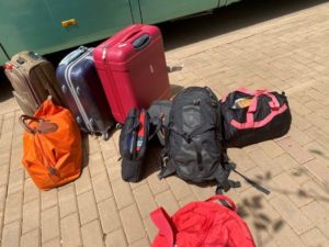 Bags are seen on the ground as people are being evacuated from Khartoum to Port Sudan April 23, 2023 in this picture obtained from social media. Twitter@dalliasd/via REUTERS