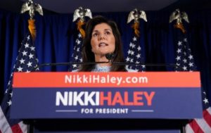 U.S. Republican presidential candidate and former Ambassador to the United Nations Nikki Haley delivers a campaign policy speech on abortion in Arlington, Virginia, U.S. April 25, 2023. REUTERS/Kevin Lamarque