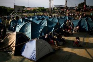 FILE PHOTO: Venezuelan migrants are seen inside a coliseum where