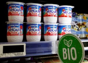 FILE PHOTO: Dairy products of French food group Danone are seen in a supermarket in Nice, France, January 9, 2023. REUTERS/Eric Gaillard//File Photo