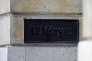 A J.P. Morgan logo is seen in Paris