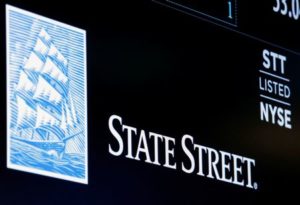 FILE PHOTO: The ticker and logo for State Street Corporation is displayed on a screen at the post where it’s traded on the floor of the New York Stock Exchange (NYSE) in New York City, U.S., June 30, 2016. REUTERS/Brendan McDermid/File Photo
