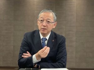 FILE PHOTO: Sompo Holdings Inc Chief Operating Officer Mikio Okumura speaks during an interview with Reuters in Tokyo, Japan April 21, 2023. REUTERS/ Makiko Yamazaki