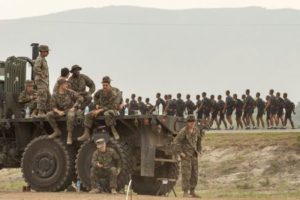 U.S. troops look on as Philippine military cadets train at a naval base where the annual joint military exercises between U.S. and Philippine troops called “Balikatan” or shoulder-to-shoulder are held in San Antonio, Zambales province, Philippines, April 26, 2023. REUTERS/Eloisa Lopez