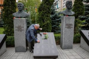 Local resident cleans a plate with victims’ names at a ceremony marking the 37th anniversary of the disaster at the Chornobyl Nuclear Power Plant, amid Russia’s attack on Ukraine, in Kyiv, Ukraine April 26, 2023. REUTERS/Alina Yarysh