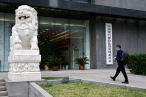 FILE PHOTO: A man enters the China Banking and Insurance Regulatory Commission (CBIRC) building in Beijing, China April 20, 2023. REUTERS/Tingshu Wang