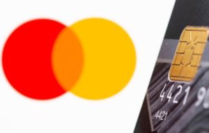 Credit card is seen in front of displayed Master Card logo in this illustration taken, July 15, 2021. REUTERS/Dado Ruvic/Illustration