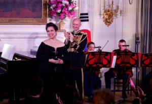 Lea Salonga reacts during a performance at an official State Dinner, during South Korea’s President Yoon Suk Yeol’s visit, at the White House in Washington, U.S. April 26, 2023. REUTERS/Evelyn Hockstein