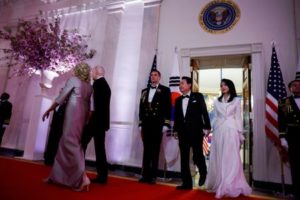 U.S. President Joe Biden, First Lady Jill Biden, South Korea’s President Yoon Suk Yeol and first lady Kim Keon Hee attend an official State Dinner in Washington, U.S. April 26, 2023. REUTERS/Evelyn Hockstein