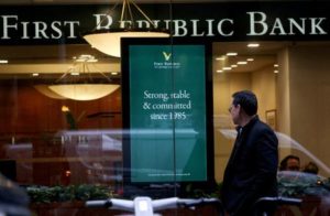 FILE PHOTO: A person walks past a First Republic Bank branch in Midtown Manhattan in New York City, New York, U.S., March 13, 2023. REUTERS/Mike Segar/File Photo