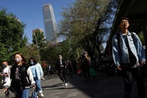 FILE PHOTO: People walk on a street at the Beijing’s Central Business District (CBD) during morning rush hour, in Beijing, China April 18, 2023. REUTERS/Tingshu Wang