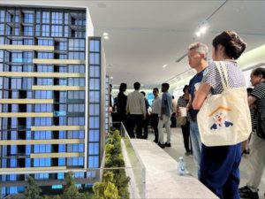 FILE PHOTO: Two buyers look at models of apartments on sale at The Parkside, in Macquarie Park, Sydney, Australia, February 25, 2023. REUTERS/Stella Qiu/File Photo