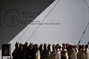 Clergy attend a holy mass led by Pope Francis at the Kossuth Lajos Square during his apostolic journey in Budapest, Hungary, April 30, 2023. REUTERS/Marton Monus