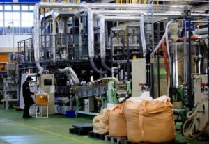 FILE PHOTO: A man works at a factory line of Biomass Resin Fukushima’s factory in Namie, about 7 km from the crippled Fukushima Dai-Ichi nuclear plant, Fukushima Prefecture, Japan February 28, 2023. REUTERS/Kim Kyung-Hoon
