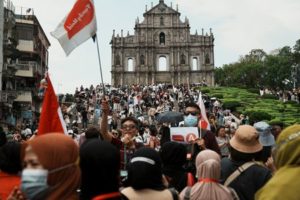 A view of visitors in front of the ruins of Saint Paul’s during Labour Day holiday in Macau, China, April 30, 2023. REUTERS/Lam Yik
