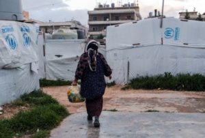 A Syrian refugee walks near tents, at an informal settlement, in Al-Marj, in Bekaa, Lebanon April 5, 2023. REUTERS/Emilie Madi