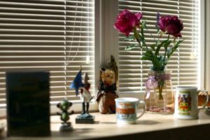 Flowers and ornaments belonging to Norman Allen, 86, are displayed on a window ledge in his home in Rickmansworth, Britain, April 17, 2023. REUTERS/Hannah McKay