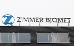 FILE PHOTO: The logo of medical implants maker Zimmer Biomet is seen at a plant in Winterthur, Switzerland, November 16, 2018. REUTERS/Moritz Hager