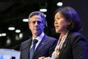 FILE PHOTO: U.S. Secretary of State Anthony Blinken holds a news conference with U.S. Trade Representative Katherine Tai on the sidelines of the APEC Summit in Bangkok, Thailand November 17, 2022. REUTERS/Athit Perawongmetha