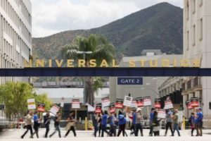Workers and supporters of the Writers Guild of America protest outside Universal Studios Hollywood after union negotiators called a strike for film and television writers, in the Universal City area of Los Angeles, California, U.S., May 3, 2023. REUTERS/Mario Anzuoni
