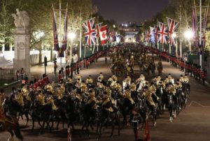 Members of the military take part in a full overnight dress rehearsal of the Coronation Ceremony of Britain’s King Charles and Camilla, Queen Consort in London, Britain, May 3, 2023. REUTERS/Henry Nicholls