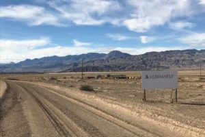 FILE PHOTO: A sign at the approach road leads to Albemarle’s lithium evaporation ponds at its facility in Silver Peak, Nevada, U.S., January 9, 2019. REUTERS/Ernest Scheyder/File Photo