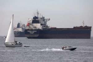 FILE PHOTO: Boats pass container ships anchored in English Bay in Vancouver, British Columbia, Canada October 10, 2022. REUTERS/Chris Helgren