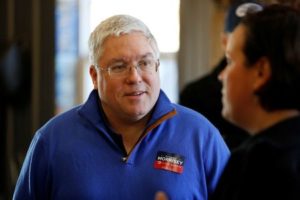 Republican senate nominee Patrick Morrisey speaks with a supporter at a blacksmith’s forge ahead of the 2018 midterm elections in Falling Water, West Virginia, U.S., November 4, 2018. REUTERS/Joshua Roberts