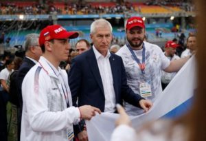FILE PHOTO: Athletics – ALBA Games – Venezuela 2023 – Opening Ceremony – Jorge Luis Garcia Carneiro Stadium, Macuto, Venezuela – April 21, 2023 Russia sports minister Oleg Matytsin pose with athletes during the opening ceremony REUTERS/Leonardo Fernandez Viloria