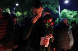 People gather to lay flowers at Cvetni Trg (Flower Square) for the victims of a mass shooting in a school where a boy opened fire on others students and staff, in Belgrade, Serbia, May 3, 2023. REUTERS/Zorana Jevtic
