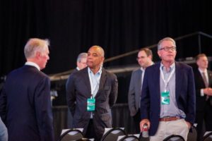 Ken Chenault, a director at Berkshire Hathaway, talks with other directors before the start of the company’s annual meeting in Omaha, Nebraska, U.S. May 6, 2023. REUTERS/Rachel Mummey