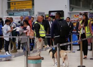 Undocumented migrants from Venezuela who were in limbo at Chile-Peru border, stand at the airport while they board a special homecoming flight to Venezuela from Arica airport, Chile May 7, 2023. REUTERS/Alexander Infante