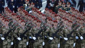 Russian service members march in columns before a rehearsal for a military parade, which marks the anniversary of the victory over Nazi Germany in World War Two, in Moscow, Russia May 7, 2023. REUTERS/Maxim Shemetov