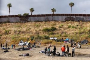 Migrants gather along the U.S. Mexico border near San Diego