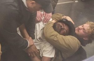 FILE PHOTO: A man, identified as 30-year-old Jordan Neely, is placed in a choke hold by a fellow passenger on a subway train, in New York City, NY, U.S., May 1, 2023. in this still image obtained from a video. JUAN ALBERTO VAZQUEZ/via REUTERS