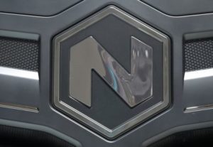 FILE PHOTO: Logo of U.S. truckmaker Nikola is pictured at the IAA Transportation fair, which will open its doors to the public on September 20, 2022, in Hanover, Germany, September 19, 2022. REUTERS/Fabian Bimmer
