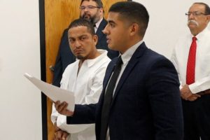 George Alvarez, 34, accused of mowing down a group of pedestrians with his SUV near a homeless shelter that attends to migrants, attends his arraignment charged with eight counts of manslaughter in Brownsville, Texas, U.S. May 8, 2023 in a still image from video. Brownsville Police Department/Handout via REUTERS