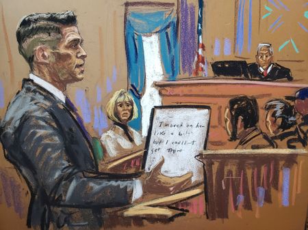 NEW YORK (Reuters) -Donald Trump’s absence from a trial where writer E. Jean Carroll accuses him of rape and defamation shows that “he did it,” a lawyer for Carroll said on Monday, while Trump’s lawyer told jurors the case was “outrageous.”