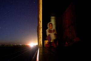 Victoria, a seven-year-old migrant girl, sits inside a carriage as she travels with her family on board a train with the intention of reaching the United States, on the outskirts of Ciudad Juarez, Mexico April 19, 2023. REUTERS/Jose Luis Gonzalez
