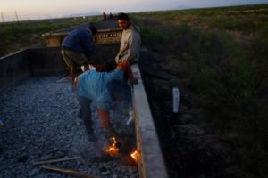 Juan Sebastian Lluminagua, a 26-year-old migrant from Guatemala who intends to reach the United States, builds a fire to cook with as he travels on a train, on the outskirts of Ciudad Juarez, Mexico, April 19, 2023. REUTERS/ Jose Luis Gonzalez