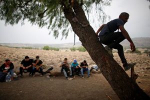 Migrants, mostly from Venezuela, wait at the site known as El Basurero, a stretch of land next to a trash dump and the railroad, for a train to continue their journey to the U.S. border in Huehuetoca, State of Mexico, Mexico April 26, 2023. REUTERS/Gustavo Graf