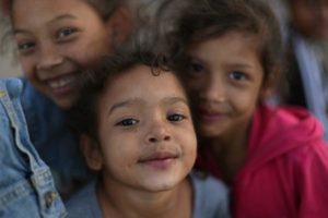 Three migrant girls from Venezuela pose for a picture in the site known as El Basurero, a stretch of land next to a trash dump and the railroad, as their journey towards the U.S. border continues, in Huehuetoca, State of Mexico, Mexico April 18, 2023. REUTERS/Gustavo Graf