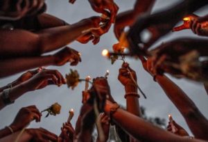 Congolese civilians hold candles to pay tribute to the victims killed by rains that destroyed the remote, mountainous area and ripped through the riverside villages of Nyamukubi, Kalehe territory in South Kivu province, during a vigil in Goma, Democratic Republic of Congo May 9, 2023. REUTERS/Stringer