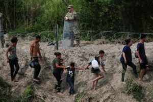 Migrants walk along the banks of the Rio Bravo river after crossing the border to turn themselves in to U.S. Border Patrol agents before the lifting of Title 42, as seen from Matamoros, Mexico May 11, 2023. REUTERS/Daniel Becerril