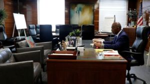 Mayor of Houston Sylvester Turner sits in his City Hall
