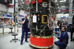 FILE PHOTO: Workers of Rolls-Royce Germany inspect a jet engine in Dahlewitz near Berlin, Germany, February 28, 2023. REUTERS/Nadja Wohlleben