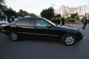 A vehicle carries Pakistan’s former Prime Minister Imran Khan, as