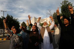 Supporters of Pakistan’s former Prime Minister Imran Khan chant slogans