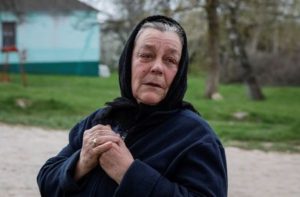 An opponent of her village’s church switch from the Ukrainian Orthodox Church (UOC) to the Orthodox Church of Ukraine (OCU) cries while she argues with a supporter of this switch, amid Russia’s attack on Ukraine, in the village of Karyshkiv, Vinnytsia region, Ukraine April 22, 2023. REUTERS/Gleb Garanich