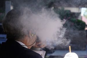 FILE PHOTO: A man uses a vaping product in the